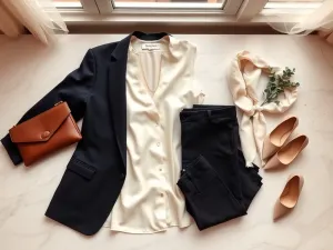 - koszula lub top – jednokolorowa, z lekkim połyskiem albo w dyskretny wzór,